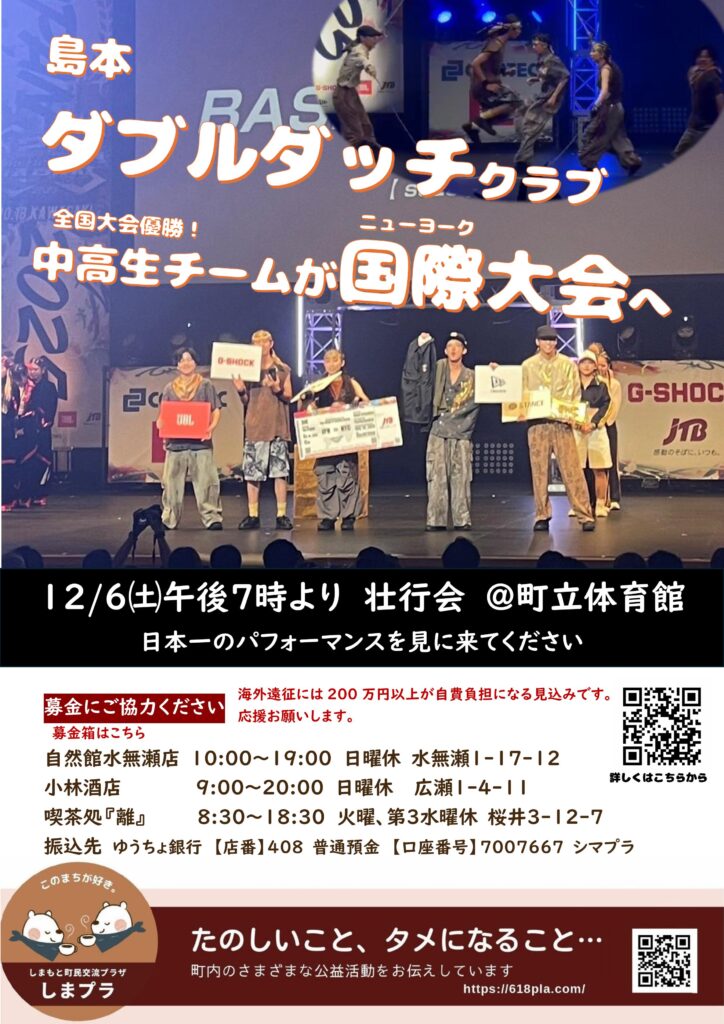 島本ダブルダッチクラブ所属の中高生チーム「BASKU RATCH」が全国大会において優勝を果たし、12/14にアメリカ・ニューヨークで開催される国際大会への出場が決まりました。